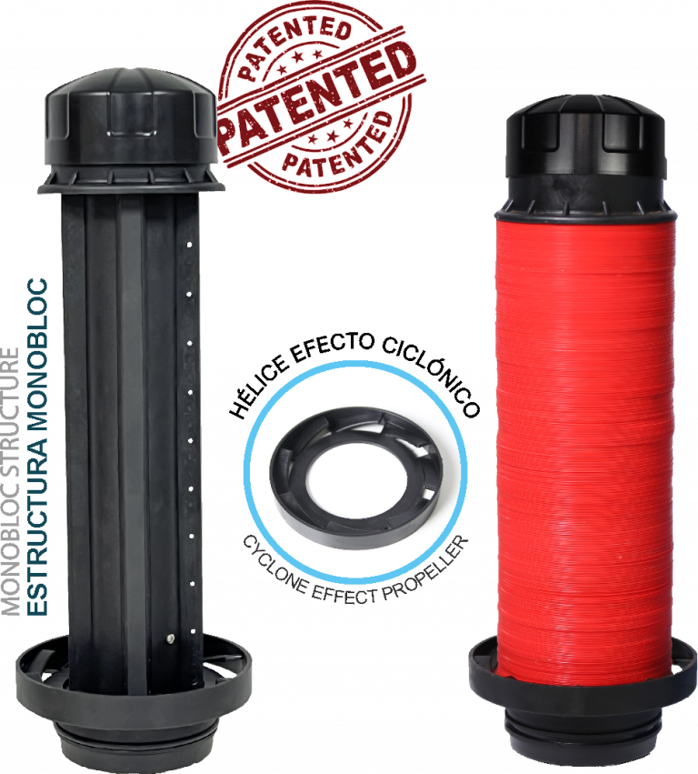 - EL EFECTO HÉLICE optimiza la filtración y reduce la frecuencia de lavados y de mantenimiento.