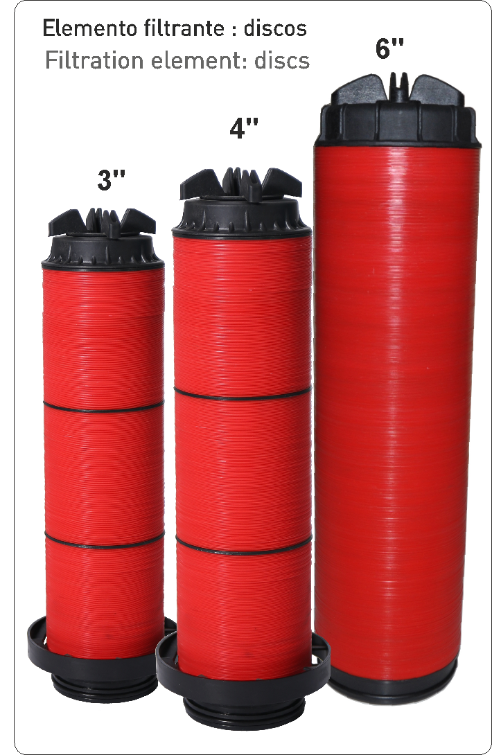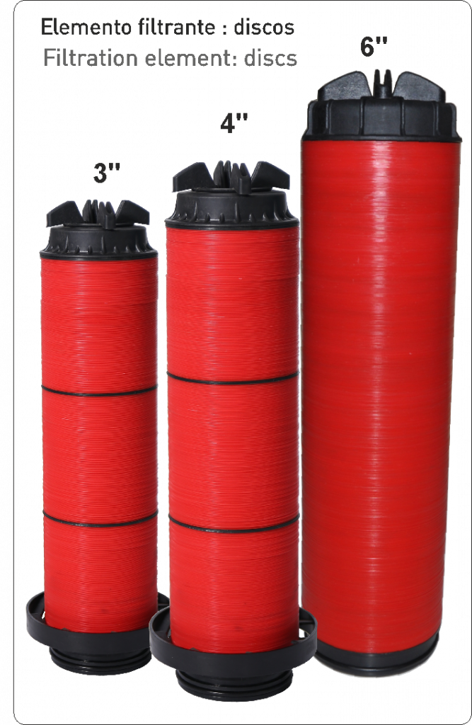 Filtración producida por la retención de partículas de mayor tamaño en los discos. Gran superficie de filtrado y facilidad de mantenimiento.