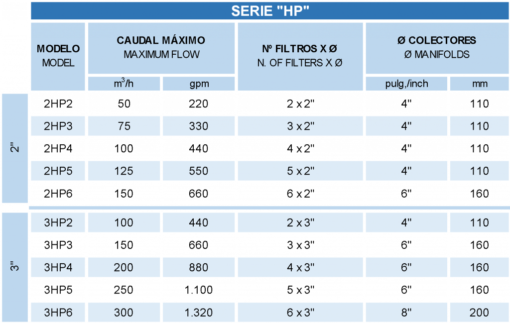 Amplia gama: de 2″ y 3″