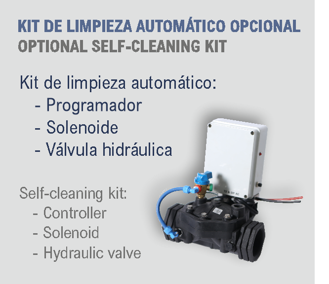 Elimina los sólidos en suspensión, aprovechando el efecto centrifugador que provoca el agua de la placa difusora en la entrada del cartucho filtrante.