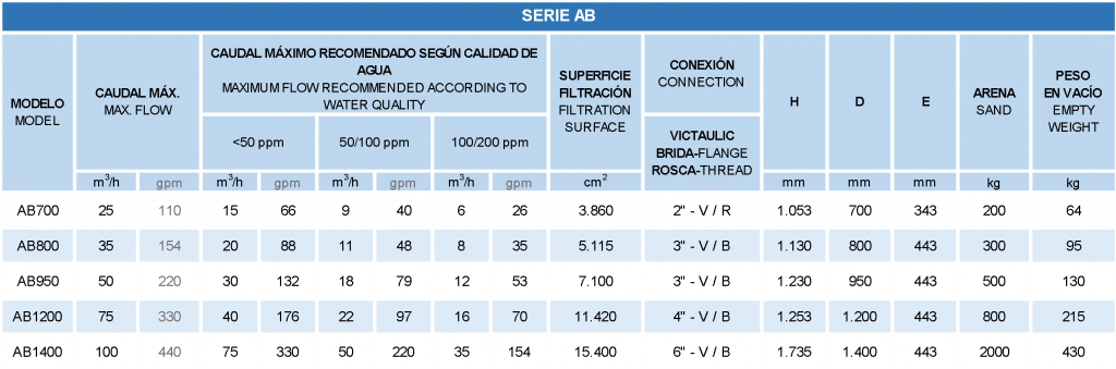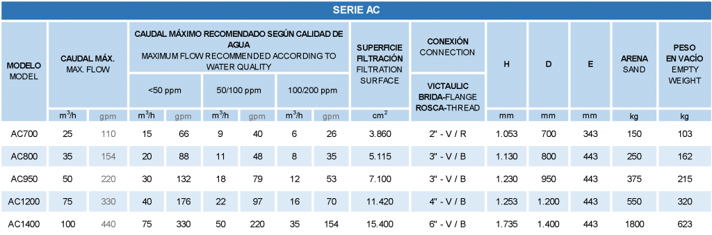 - Sistema de filtrado: por brazos colectores / crepinas de polipropileno.